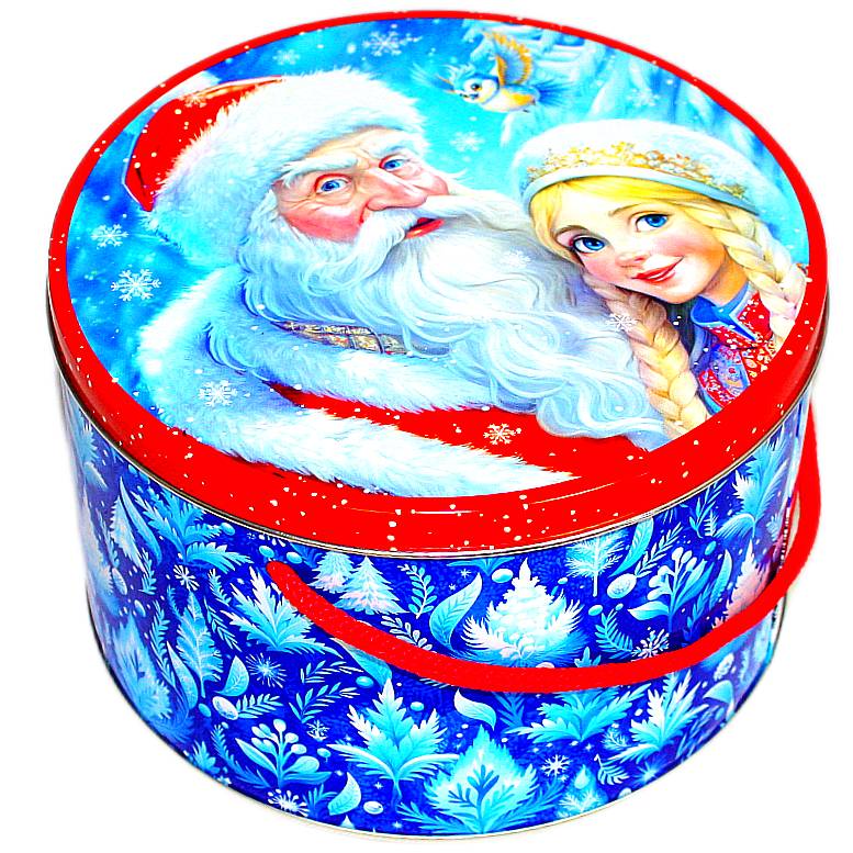 Сладкий подарок на Новый Год в жестяной упаковке весом 700 грамм