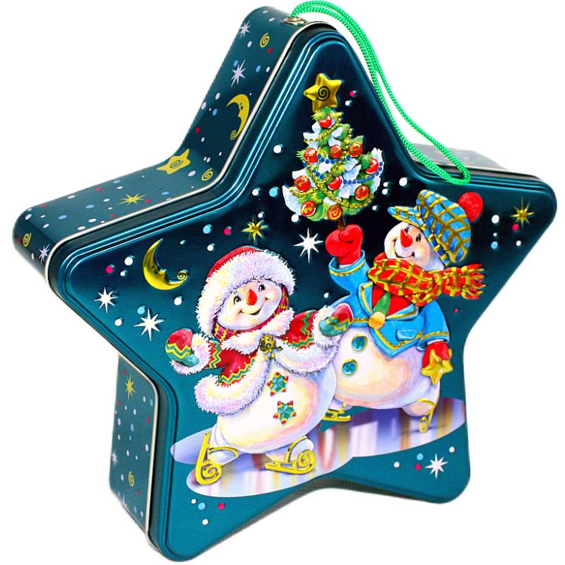 Детский новогодний подарок в жестяной упаковке весом 550 грамм