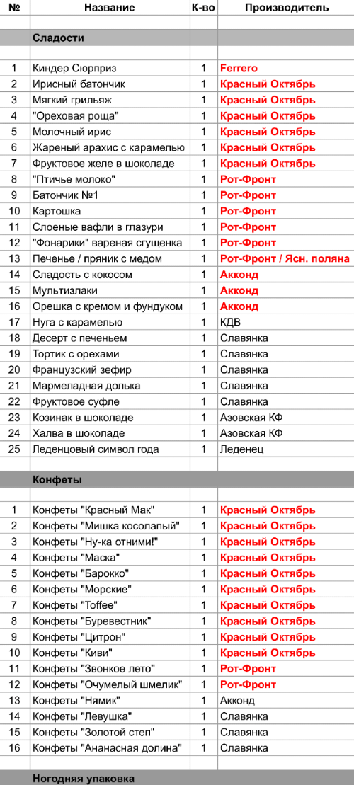 1. Проверить, можно ли внести изменения в состав подарка. Если нет, то скорее всего наборы были собраны еще летом из конфет, произведенных еще раньше