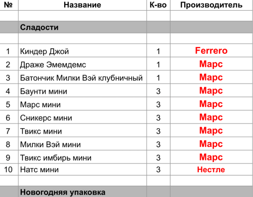 Опубликовано в Составы подарков