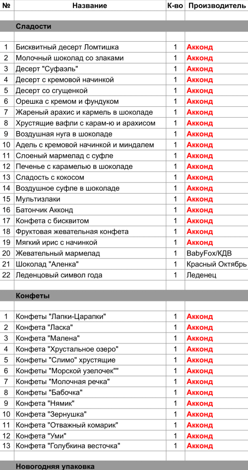 Опубликовано в Составы подарков