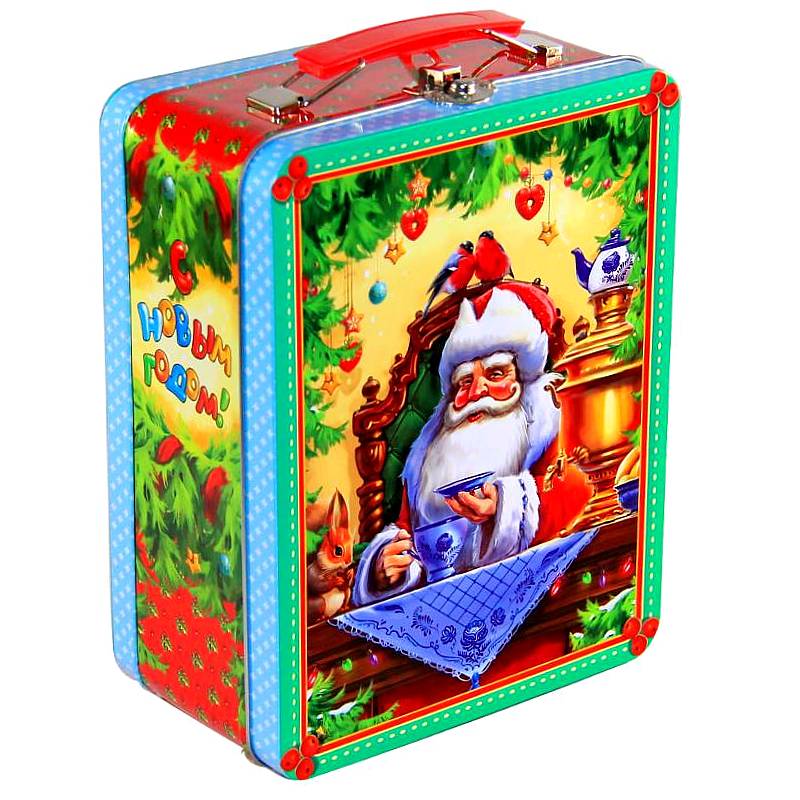 Оригинальная жестяная упаковка с новогодней тематикой и чудесным составом вкуснейших конфет. Вашим деткам понравится!
