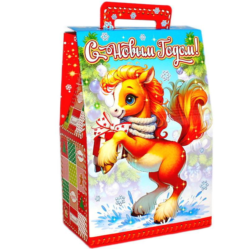 Детский новогодний подарок в картонной упаковке весом 1550 грамм